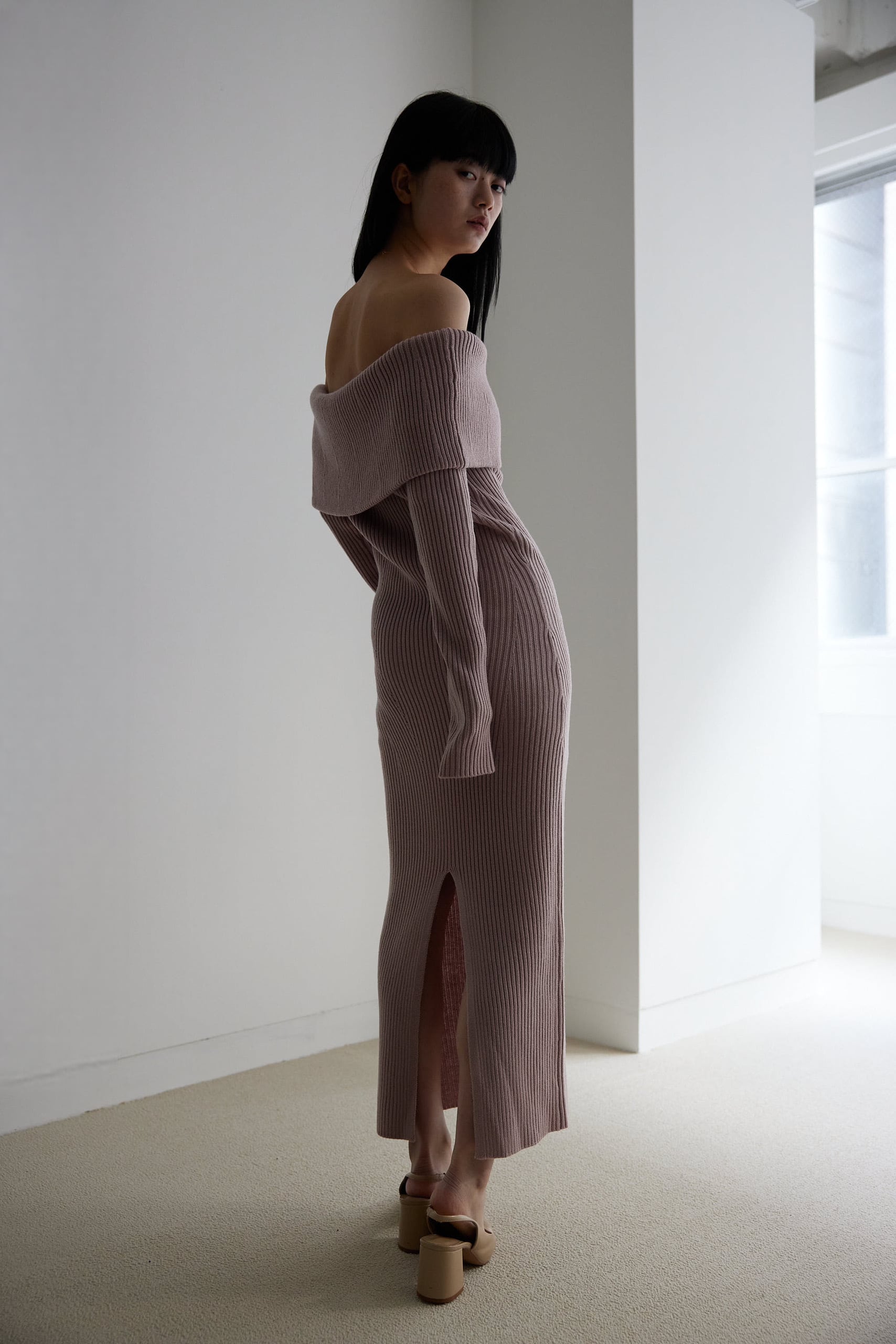 ボディラインに程よく沿う、上品な肌見せが叶うニットワンピース。