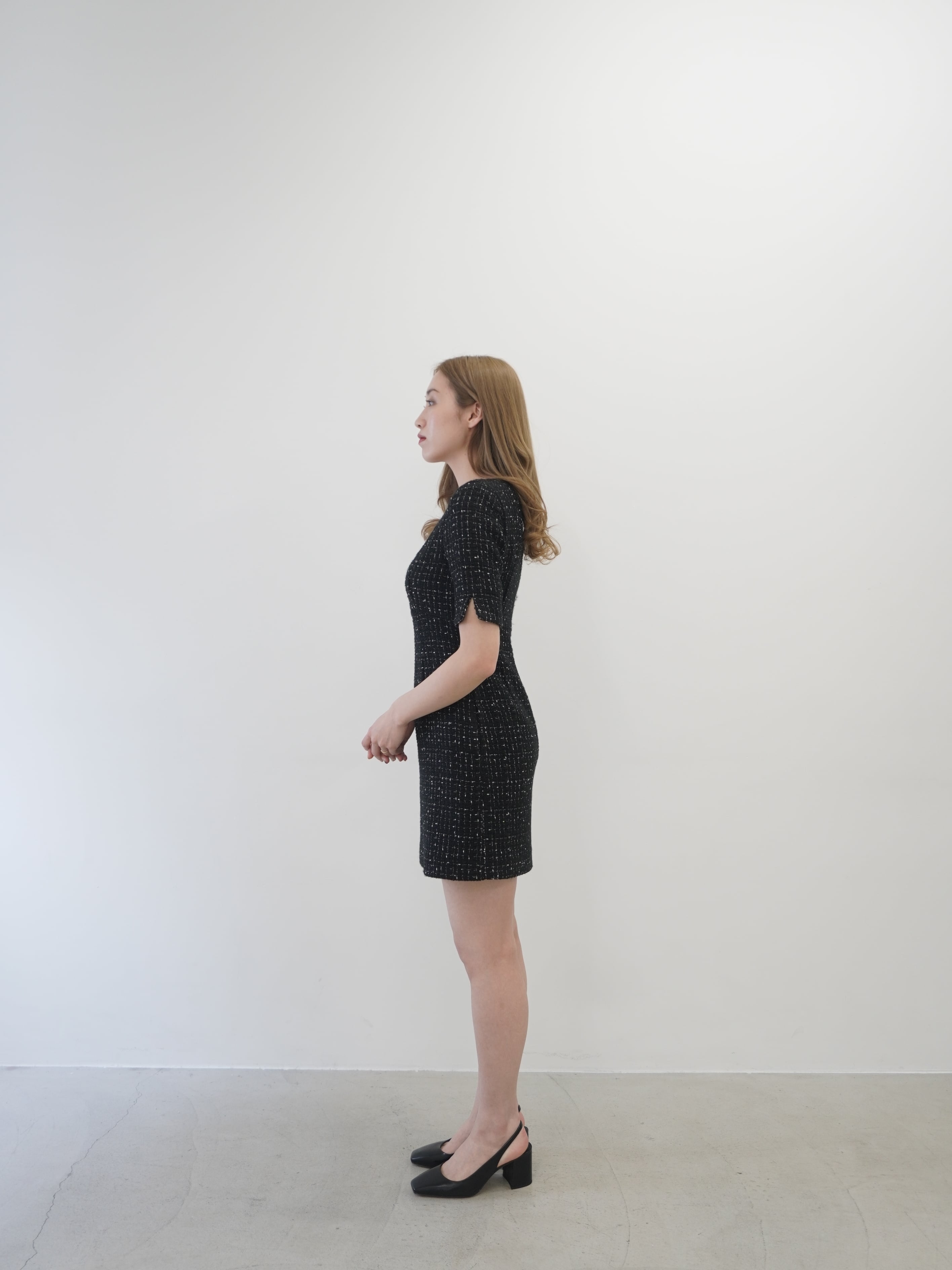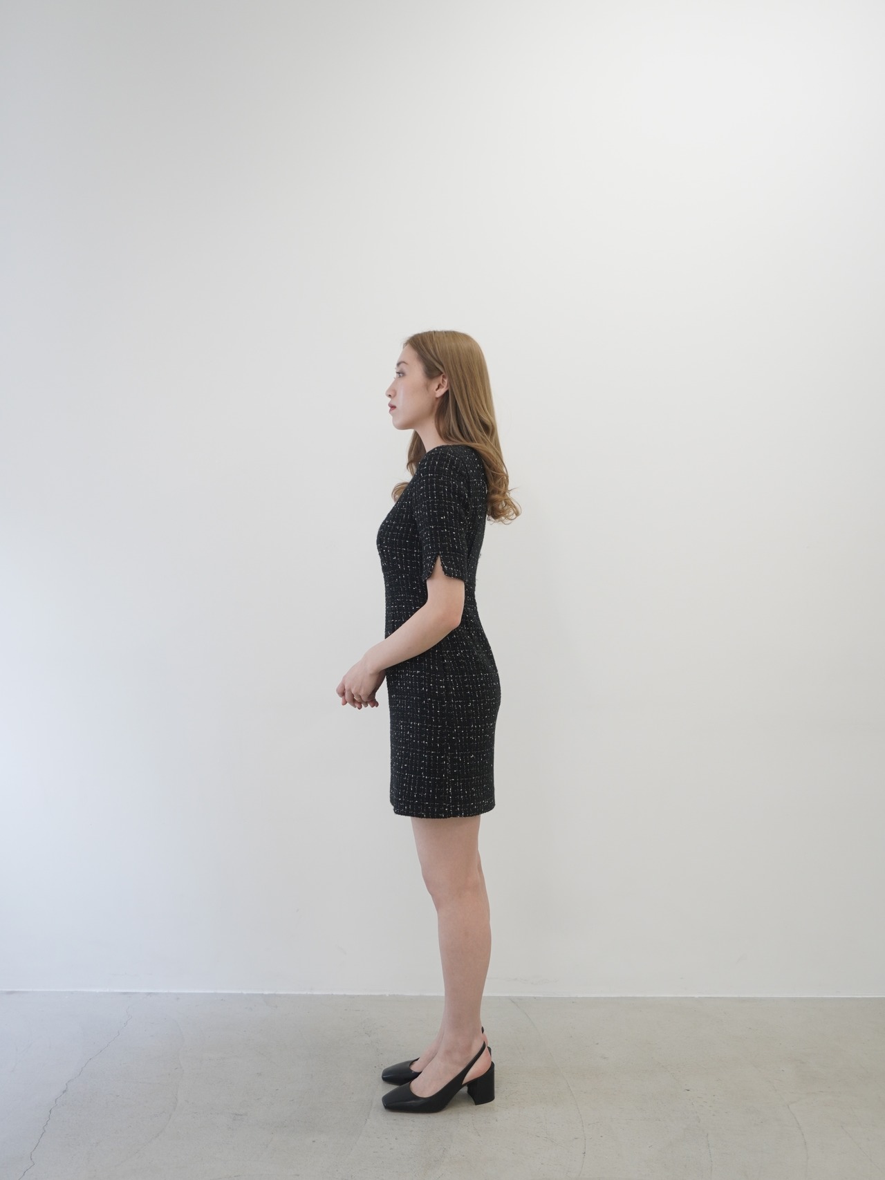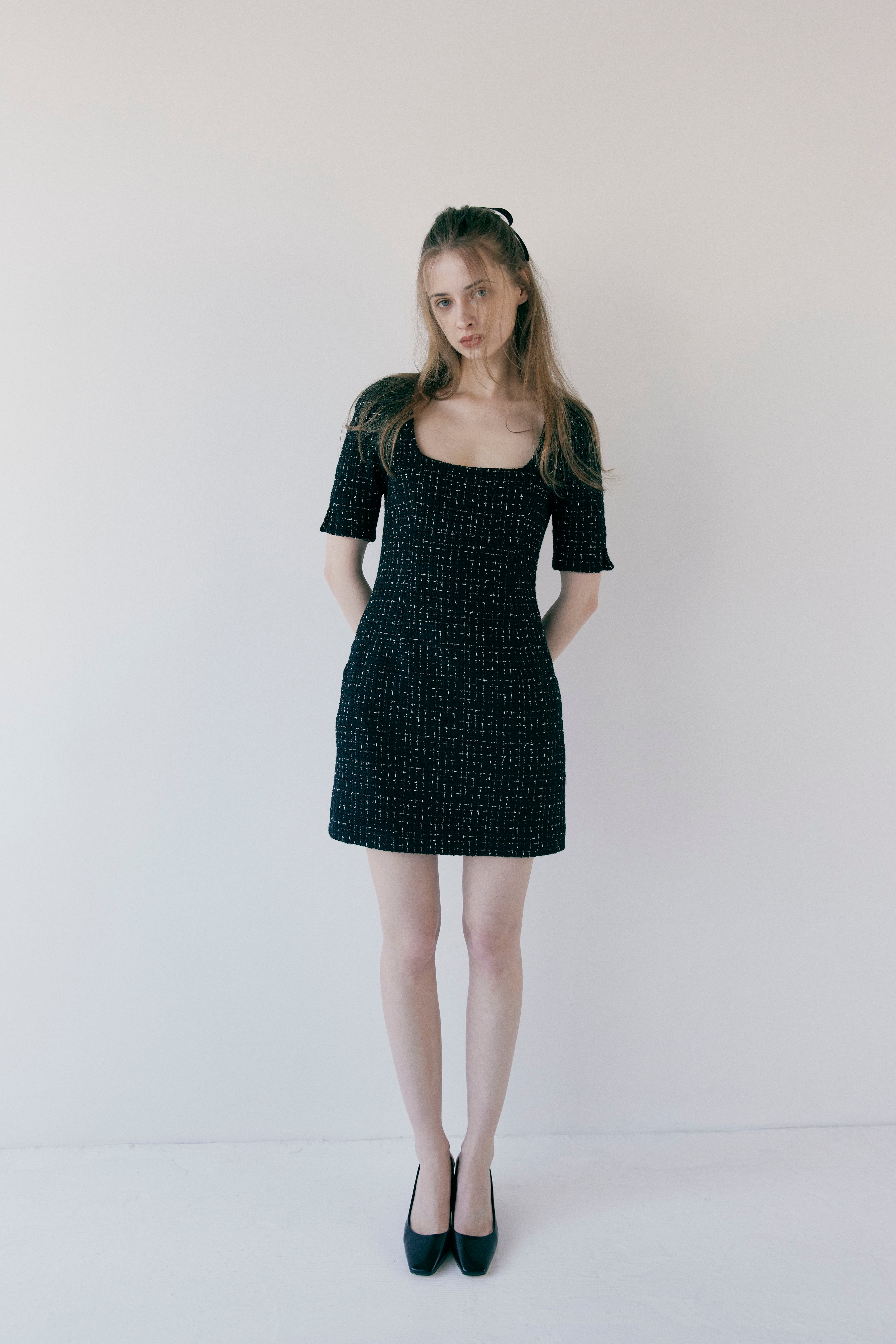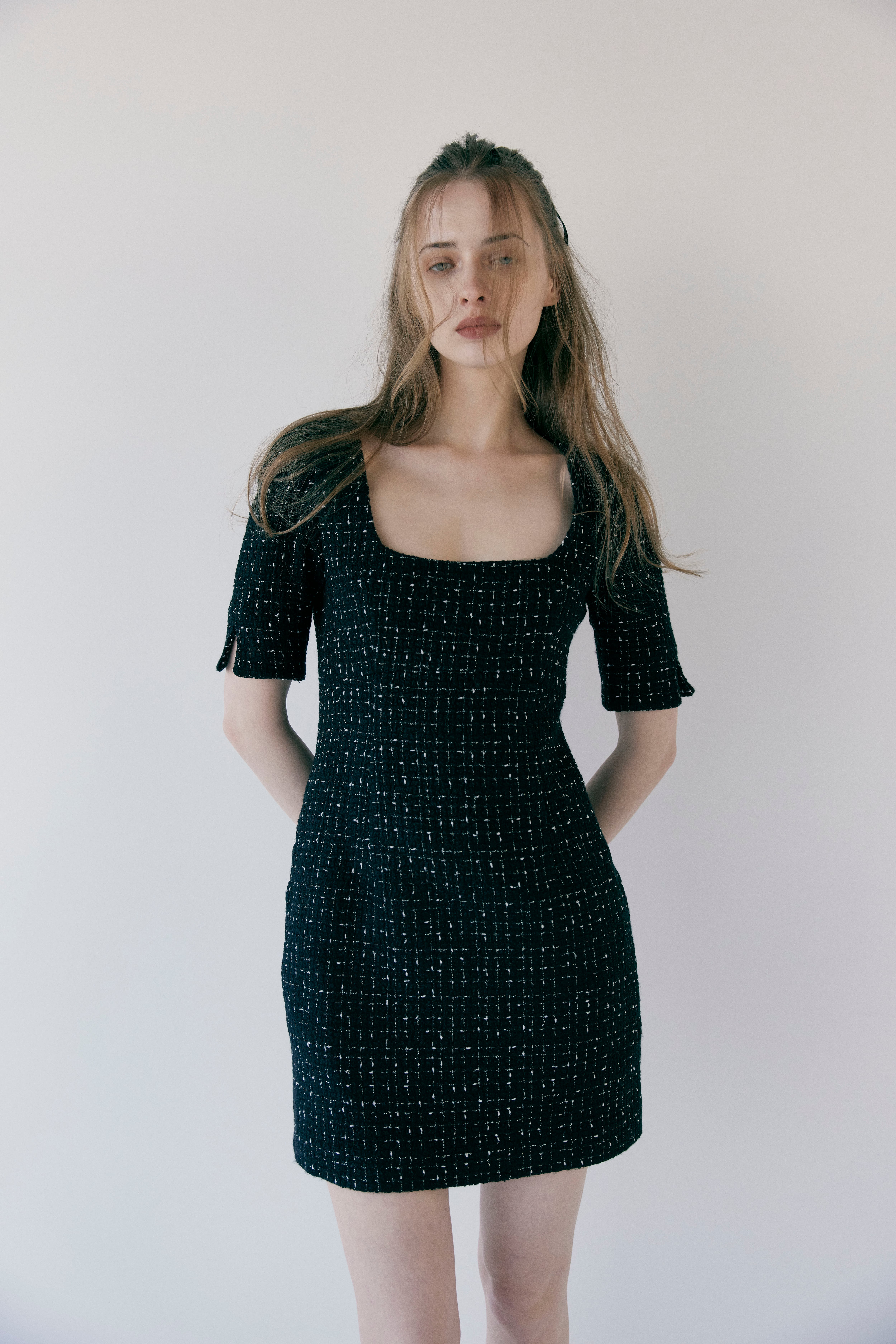 シックすぎないツイードのミニワンピースは、少しだけロリータな雰囲気。同素材のジャケットとのコーディネートでセットアップの着用ももちろん、セーラーニットカーディガンと合わせてグッドガールな装いもおすすめです。